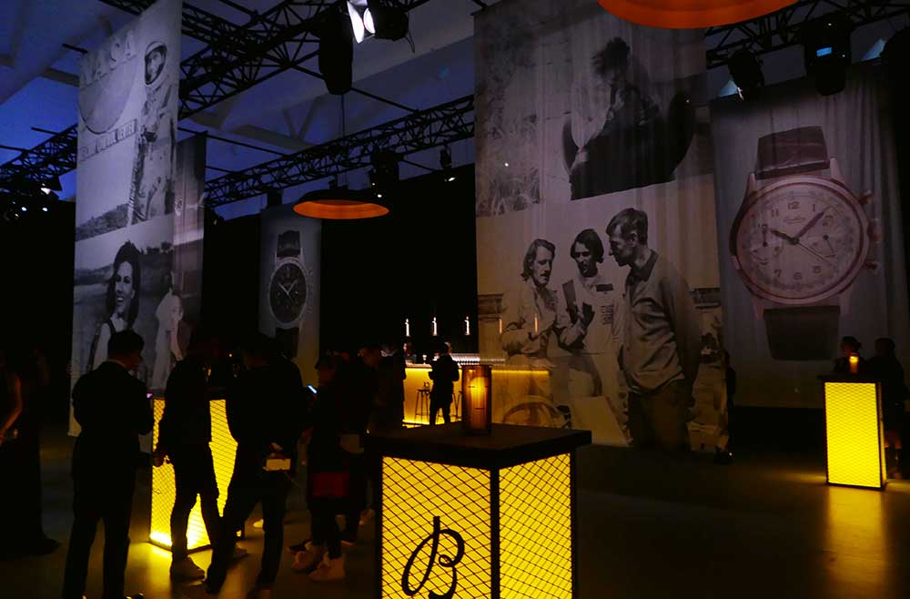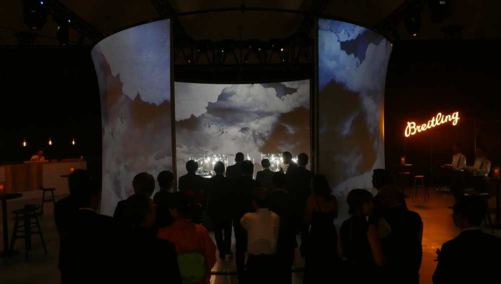 입구를 들어서자 마주한 대형 사진들은 브라이틀링 자료 창고에서 꺼낸 옛 시계와 시계를 착용한 유명인사의 사진을 담고 있었고 재즈 음악이 흘러 나오는 가운데 이내 블랙 타이로 갖춰 입은 아시아 각국의 손님으로 채워졌다.