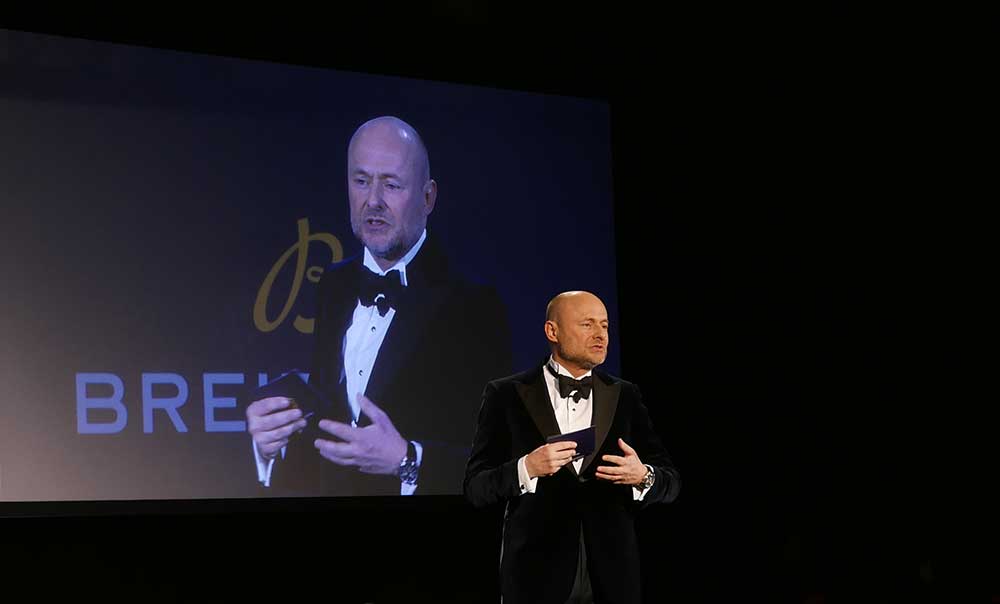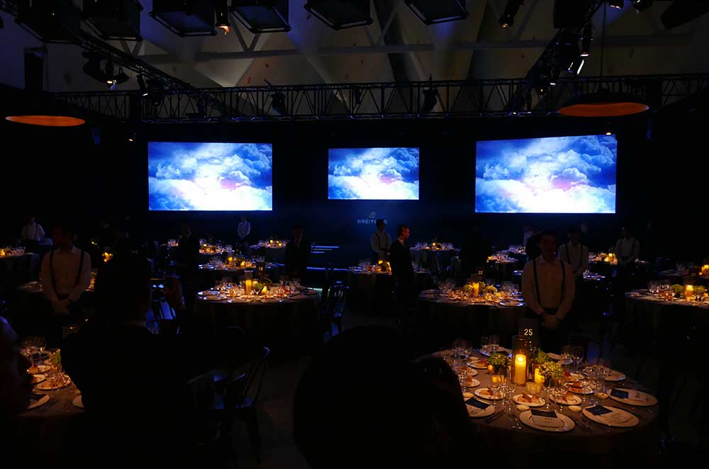 기존 브라이틀링 행사와는 확연히 다른 느낌을 주는 행사다. 이전이 다소 캐주얼한 느낌이었다면 조지 컨의 브라이틀링은 블랙 타이를 요구한만큼 우아하고 엄숙하기도 하다. 커튼이 열리자 나타난 저녁 만찬 자리에서는 조지 컨 대표의 공식 인사로 시작됐다.