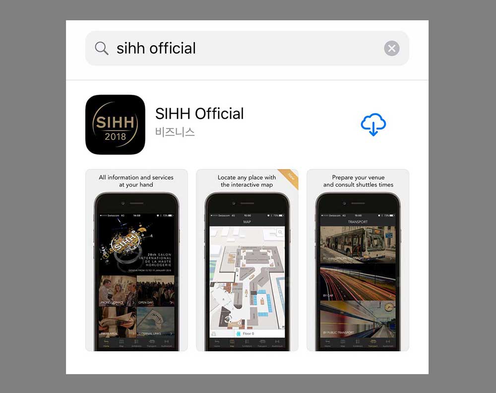 ‘SIHH Official’을 다운로드하면 장소, 시간, 부스 위치, 호텔이나 교통편 등 유용한 정보를 한 눈에 알 수 있다. 언론사를 위한 프레스 구역을 로그인을 하면 나라별로 배분된 브랜드별 PT 일정도 자동알림으로 알려 준다.