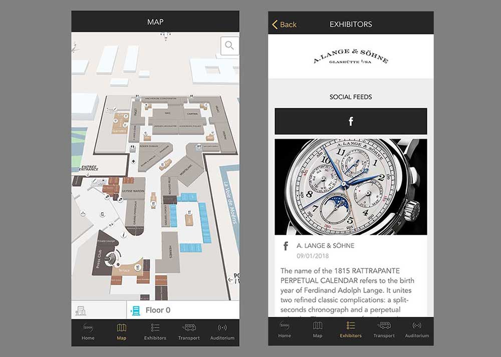 작년과 달리 브랜드가 늘어나 지도를 보면 입구에 들어가자마자 에르메스가 자리한 것을 알 수 있고 그 사이 독립시계제작사들의 부스를 들어갈 수 있도록 해놨다. 각 브랜드들 신제품 소식은 참가 브랜드 목록Exhibitors 코너를 통해 살펴볼 수 있고 올해 처음 신설한 오디토리움Auditorium 코너에서는 현장 상황을 실시간 전하는 ‘SIHH LIVE’를 볼 수 있다. 인쇄 매체에서 디지털 매체로 지형도가 변화하고 있는 가운데 주최사인 고급시계재단Fondation de la Haute Horlogerie의 적극적인 행보가 돋보인다.