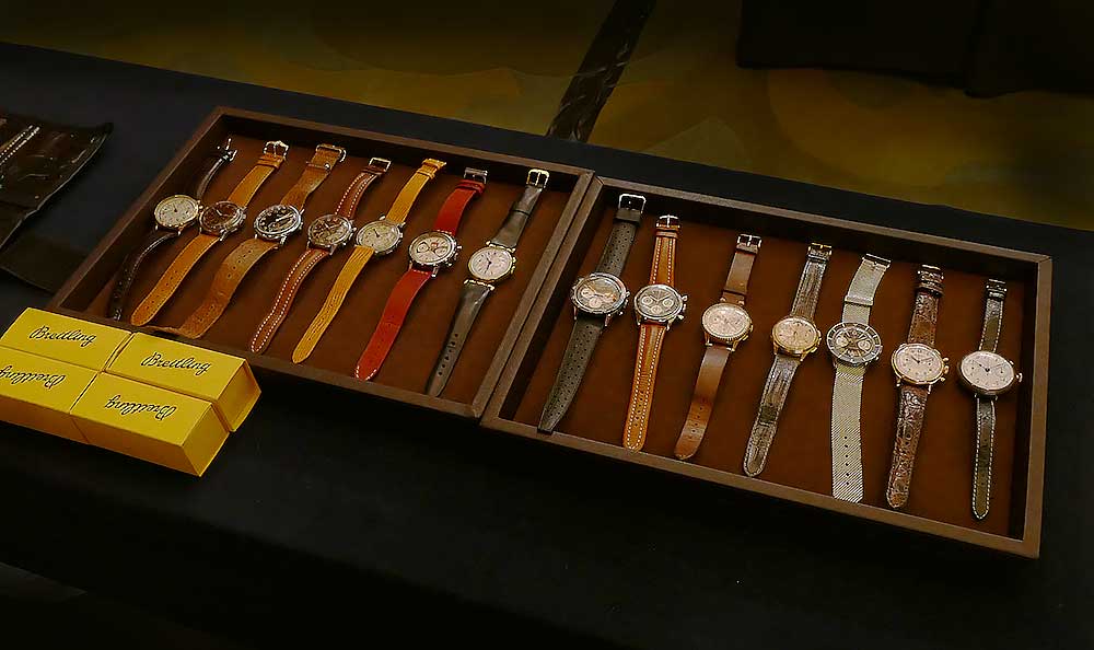 정확히 세보지 않았지만 브라이틀링만 150여 점 보유하고 있는 그는 상하이에서 취리히, 뉴욕으로 이어지는 브라이틀링 2018 봄 로드쇼와 함께할 예정인데 각국마다 빈티지 컬렉션을 달리 가져올 계획이라고. 우선 상하이에는 60여 점의 시계들을 가지고 왔고 그 중 워크숍에서 20여 점을 실물로 만져볼 수 있도록 공개했다.