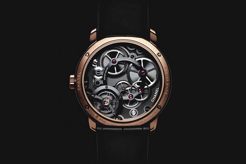 샤넬은 패션으로 출발했지만 시계에 대한 진지한 접근을 하는 브랜드 중 하나다. 일반 모델은 ETA, 컴플리케이션은 무브먼트 전문 제조사, 오데마 피게 르노 앤 파피와 손잡고 제작했었다. 그러다가 샤넬은 2016년 처음으로 자체 제작한 인하우스 칼리버 1을 소개했다. 남성 시계로 내놓은 우아한 무슈 드 샤넬이 탑재한 칼리버 1은 레귤레이터 방식으로 시간을 알려준다. 다이얼 상단에는 180도 이상 넘어가는 레드로그레이드 방식의 분, 그 아래 작은 초침창에 6시 방향에 점프 방식으로 시를 알려줬다. 케이스백으로 드러나는 무브먼트는 딱 샤넬다웠다. 잿빛으로 처리한 브릿지 아래 보이는 톱니바퀴 배열과 밸런스 휠의 움직임도 아름답지만 무엇보다 샤넬 시계임을 상징하는 ‘사자상’을 표시해뒀다.