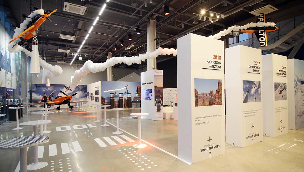 2018년 5월 2일, 스위스 시계 브랜드 해밀턴이 신사동 K현대미술관에서 해밀턴 항공 시계 100주년 기념 행사 ‘100 Years of Timing the Skies’를 진행했다. 행사장에는 비행의 역동성을 표현한 설치미술가 노동식 작가의 작품이 천장에 걸리고, 활주로를 연상시키는 공간에 실물 크기의 경비행기가 들어서 눈길을 끌었다.