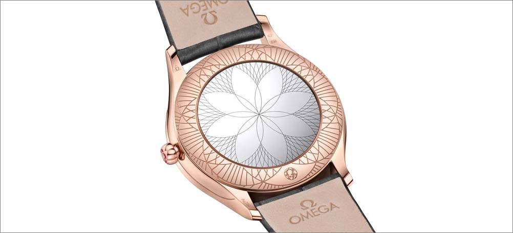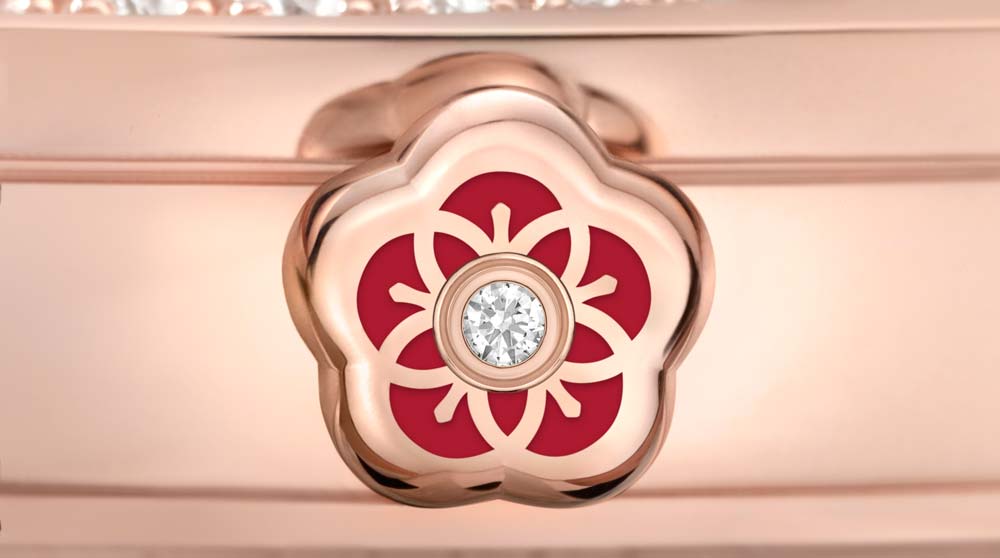 크라운과 케이스백에서는섬세하게 장식한 여성스러운 꽃 장식을 볼 수 있다. 크라운은 꽃 모양으로 빨간색 리퀴드 세라믹 삽입하고 가운데 다이아몬드를 세팅해 완성했다. 케이스백의 디자인은 ‘그녀를 위한 시간(Her Time)’을 표방한다. 8장의 꽃잎으로 이루어진 꽃송이를 그려넣고 표면을 반사되도록 처리해 거울로도 사용할 수 있다.