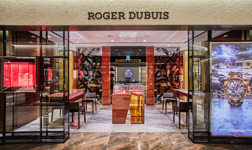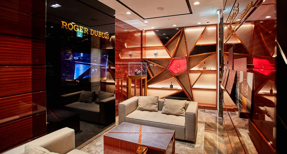 새로운 매장은 브랜드의 3가지 대표 색인 블랙, 레드, 브론즈와 나무 소재가 어우러져 전체적으로 과감하면서도 현대적인 분위기를 자아낸다. 매장 곳곳에서 볼 수 있는 다층 구조의 직선적인 디자인은 로저 드뷔 스켈레톤 무브먼트의 상징적인 요소인 아스트랄 스켈레톤Astral Skeleton 별 모양을 적용한 것.