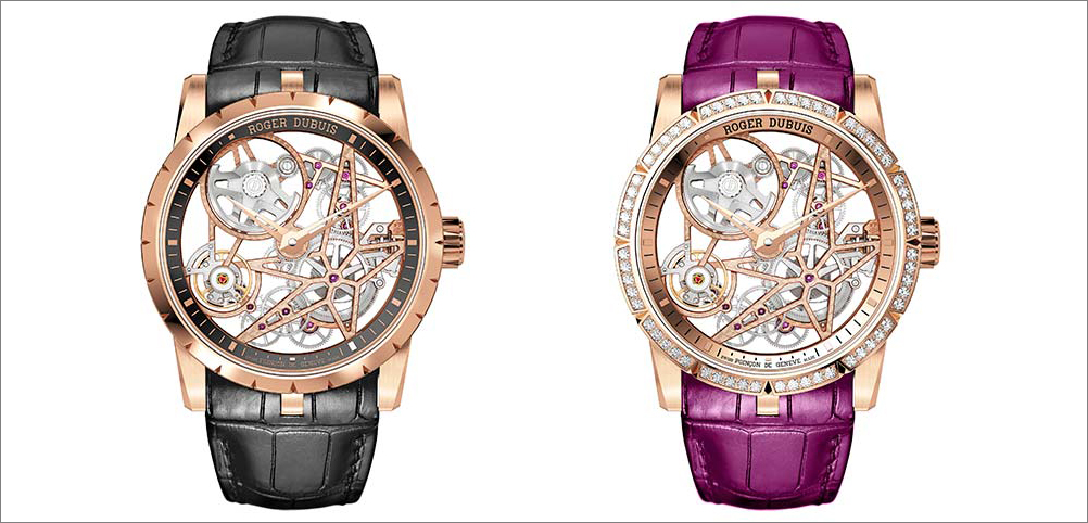 새로운 엑스칼리버 골든 오토매틱 스켈레톤 컬렉션은 무브먼트 RD820SQ를 핑크 골드로 코팅해 우아한 분위기를 더했다. 지름 42mm의 케이스, 플루티드 베젤, 크라운은 모두 18K 핑크 골드 소재이며, 베젤에 48개의 다이아몬드를 세팅한 모델도 출시한다.