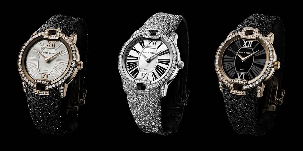여성을 위한 벨벳 캐비어 컬렉션은 캐비어에서 영감을 받은 스파클링 스트랩이 독특하다. 크리스털 구슬로 뒤덮인 듯 보이는 스트랩은 폴리머 소재의 스팽글 더스트라는 입자를 입히고 경화시킨 후 빛반사를 이루도록 처리 완성했고 안감은 러버 소재다. 18K 핑크 골드 케이스에 블랙 스트랩을 부착한 모델은 자개와 블랙 래커 다이얼 2가지 버전으로, 18K 화이트 골드 케이스에 화이트 스트랩을 부착한 모델은 자개 다이얼 버전으로 소개한다. 48시간 파워리저브 가능한 오토매틱 칼리버 RD830을 탑재했다.